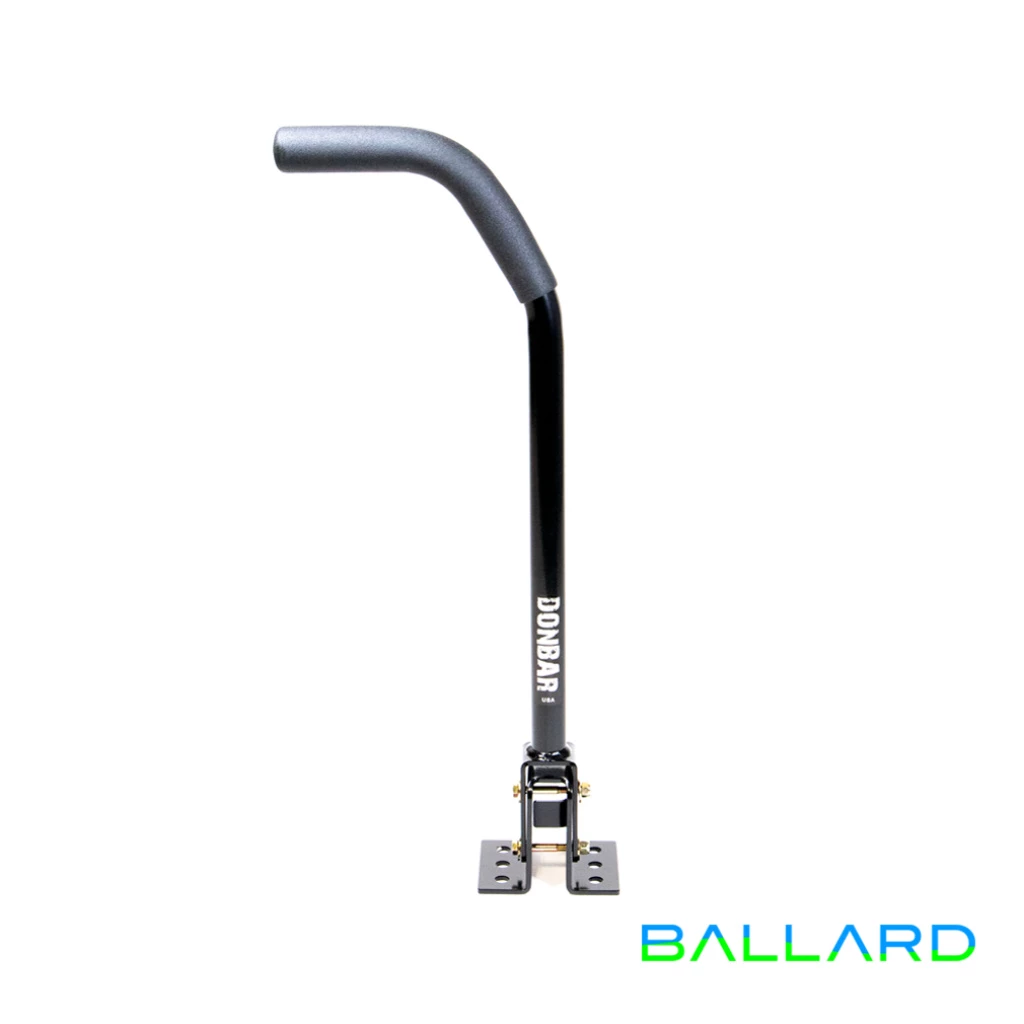The DONBAR was developed to assist in the mounting and dismounting of a zero-turn lawn mower. The DONBAR provides stability and balance for people facing physical and/or strength challenges by offering an extra point of contact when climbing on and off a mower or moving from a sitting to a standing position. The device mounts on the foot plate of the zero-turn lawn mower (often using the plate’s existing holes) and is secured by lock-nuts to resist loosening caused by vibration and torque. The DONBAR is compatible with a variety of zero-turn lawn mowers, including John Deere, Toro, Exmark, Scag, Kubota, Hustler, Husky, Ferris and most others.